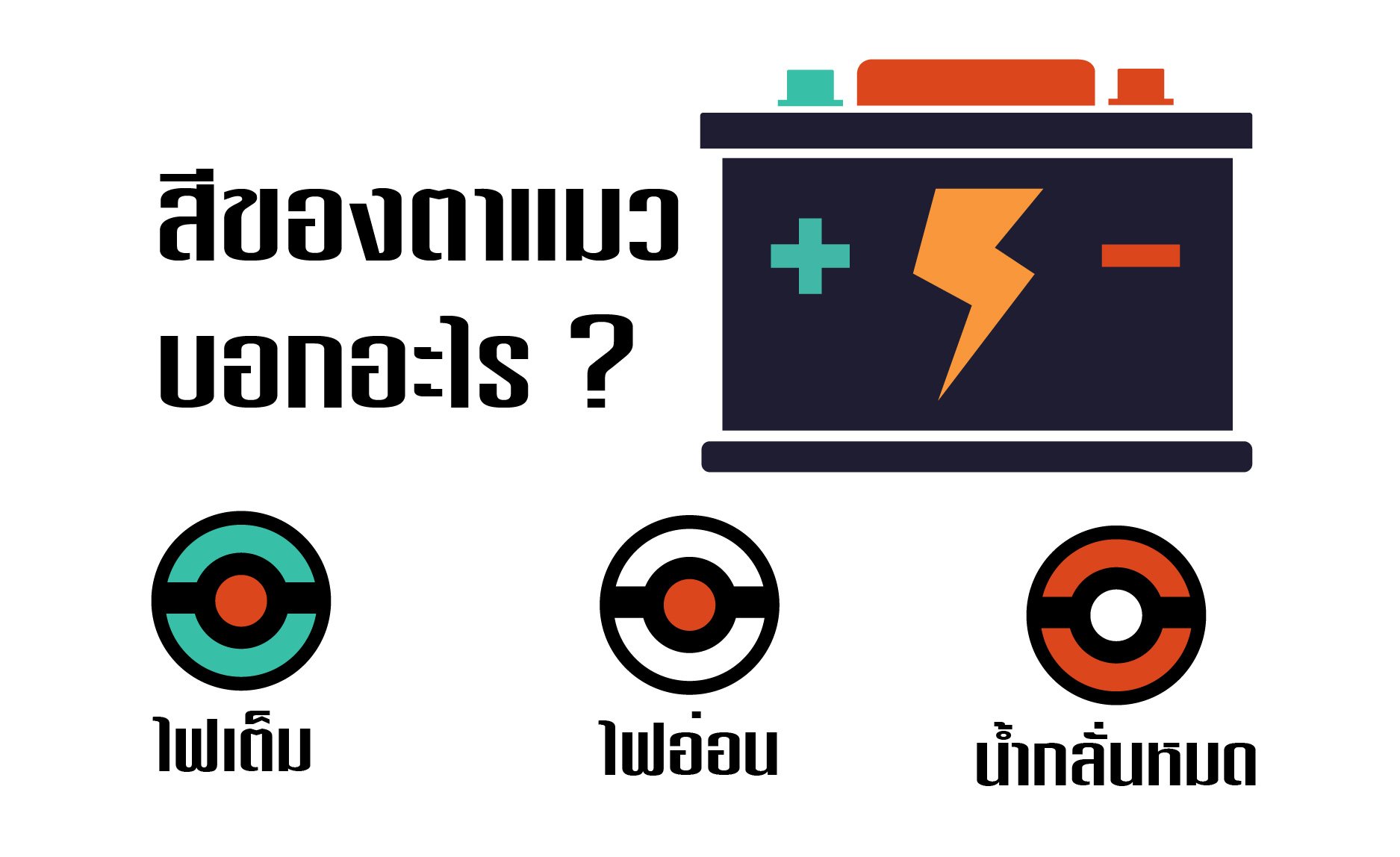 • แบตเตอรี่แบบแห้ง ต้องเช็คดูที่สีของตาแมวอย่างเดียว เพราะไม่สามารถเติมน้ำกลั่นได้