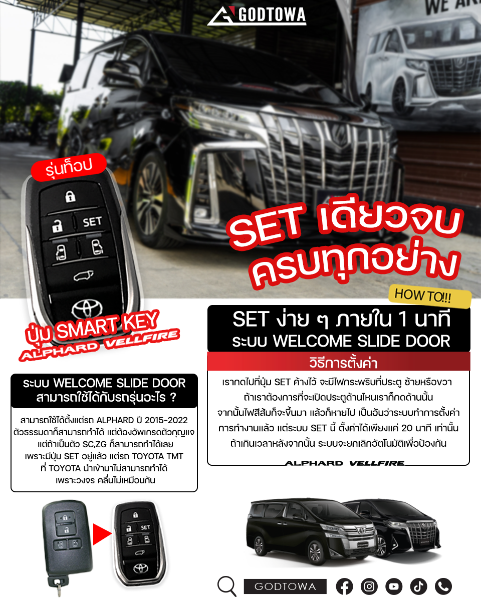 ระบบ WELCOME SLIDE DOOR สามารถใช้ได้ตั้งแต่รถ ALPHARD ปี 2015-2022 นะครับ ตัวธรรมดาก็สามารถทำได้
