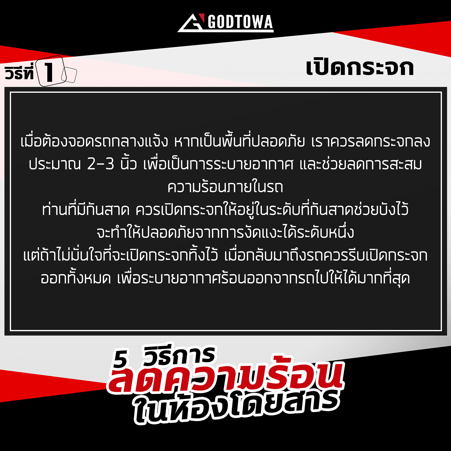 หากเป็นพื้นที่ปลอดภัย ควรลดกระจกลงประมาณ 2-3 นิ้ว เพื่อเป็นการระบายอากาศ และช่วยลดการสะสมความร้อนภายในรถ