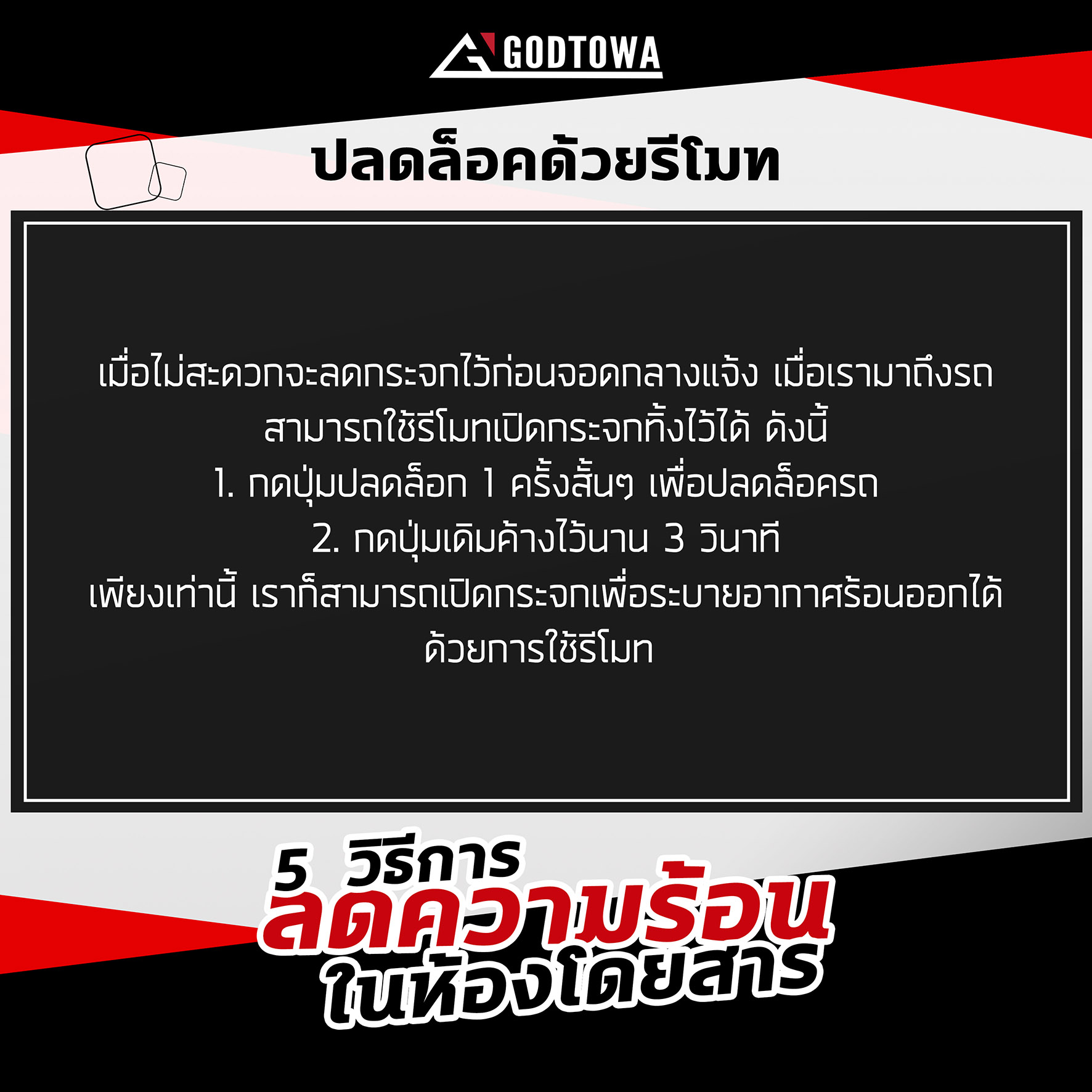 กดปุ่มเดิมค้างไว้นาน 3 วินาที เพียงเท่านี้เราก็สามารถเปิดกระจกเพื่อระบายอากาศร้อนออกได้ด้วยการใช้รีโมท