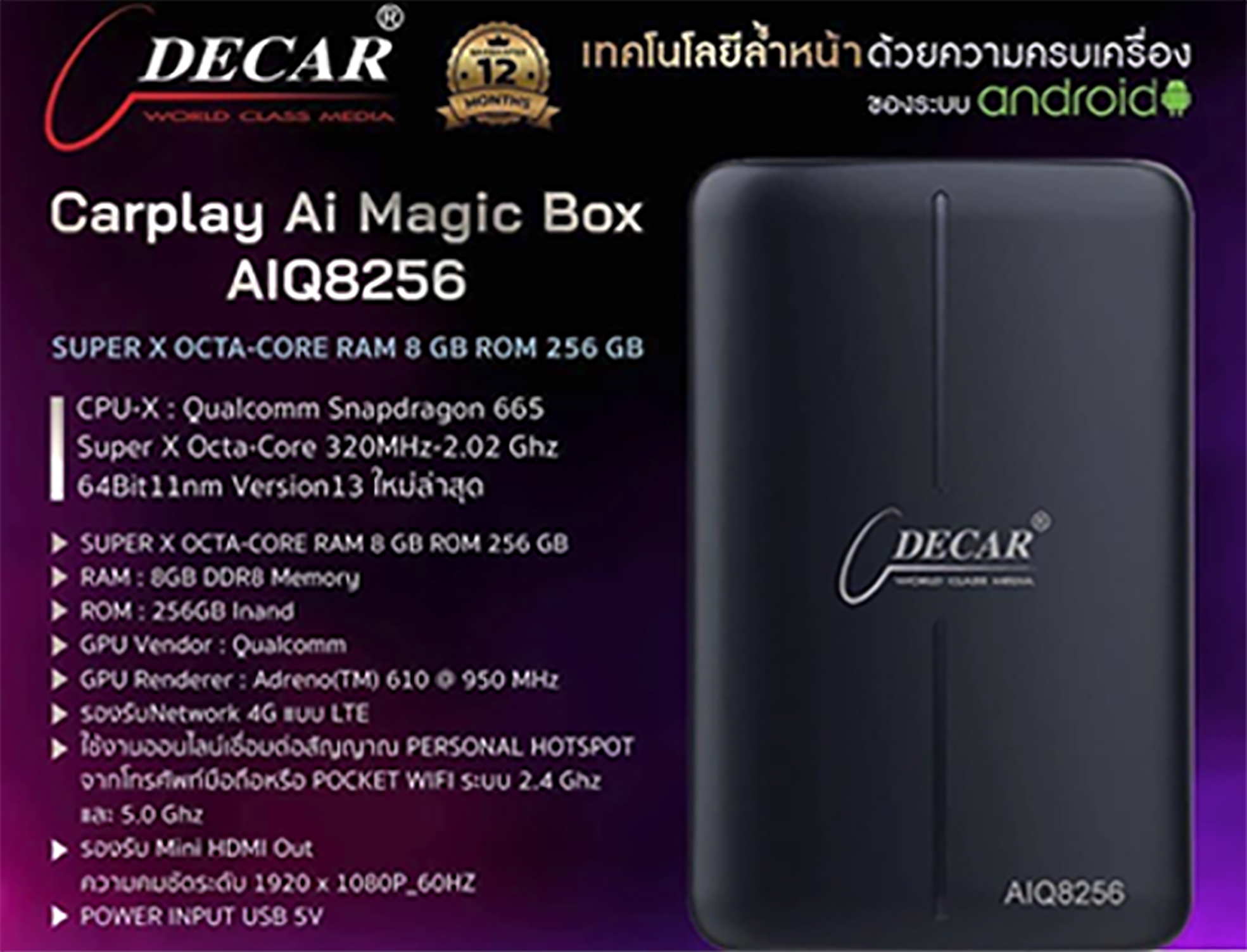 DECAR Carplay Ai Magic Box AIQ8256 สำหรับรถยนต์ ALPHARD VELLFIRE 40