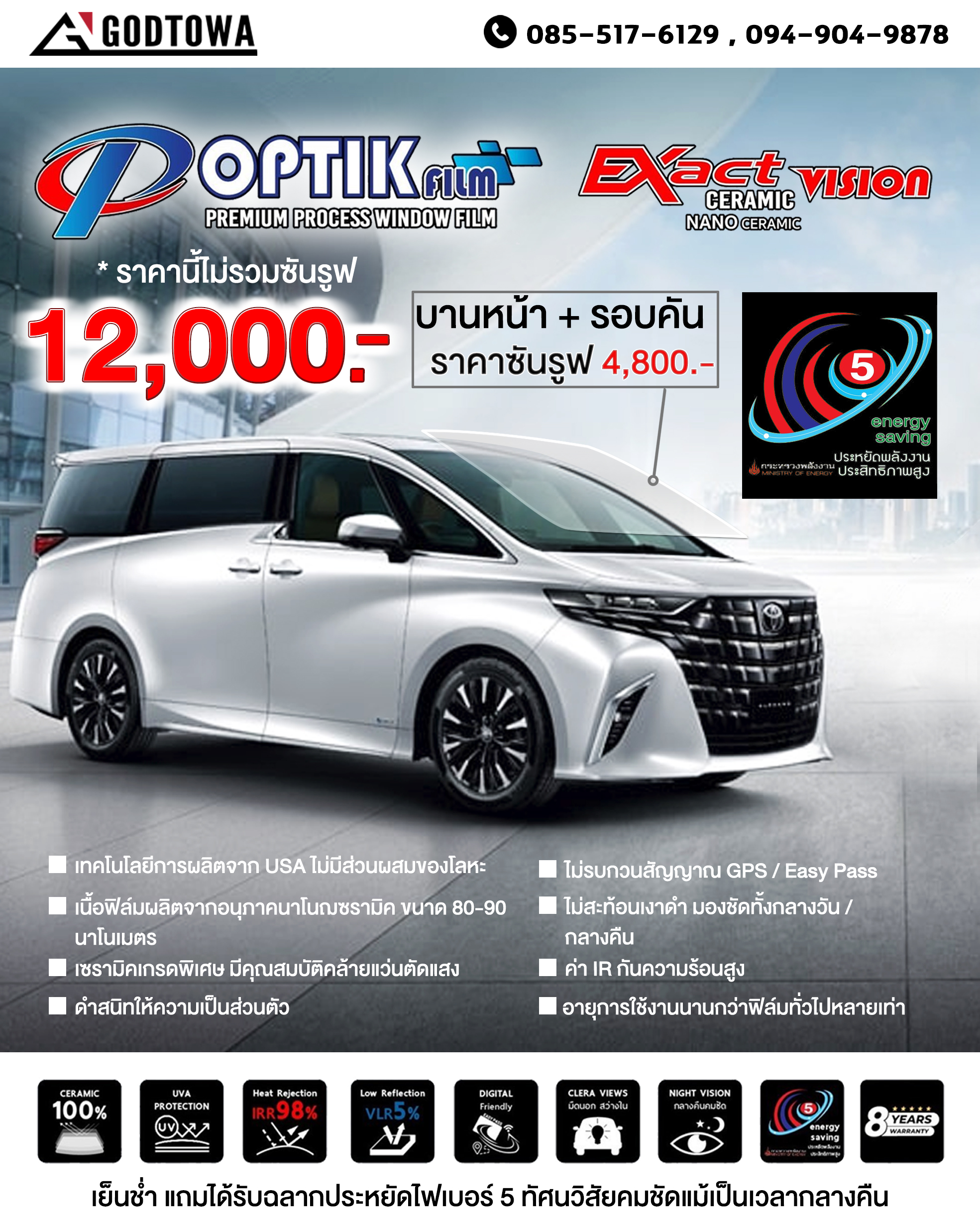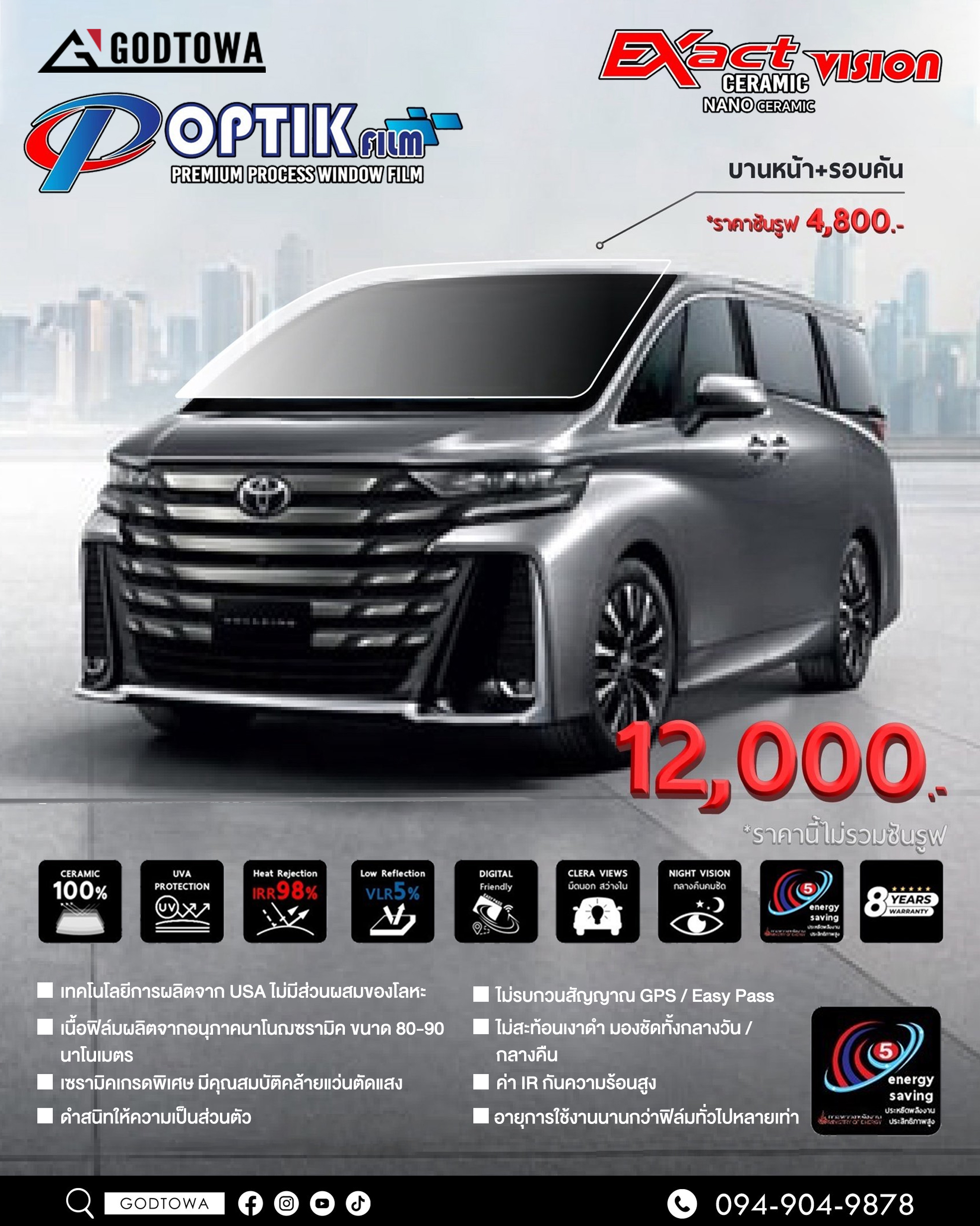 รุ่น Premium Process Window Film Exact Vision Ceramic Nano Ceramic สำหรับ Alphard 40