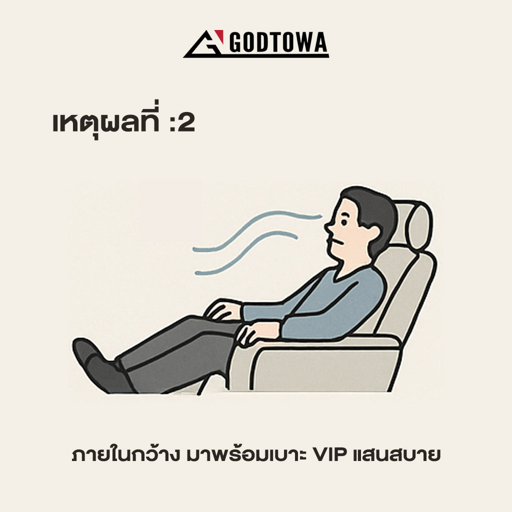 ภายในกว้างขวาง พร้อมเบาะ VIP ปรับไฟฟ้าและระบบปรับอากาศรอบคัน