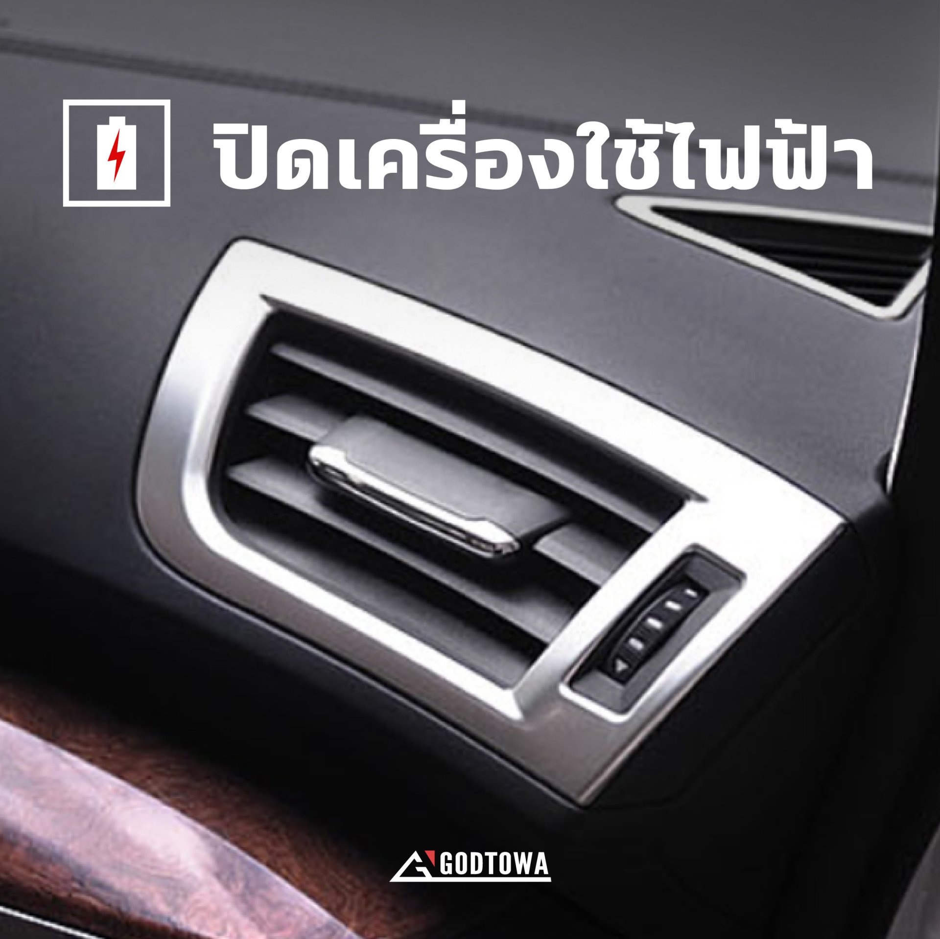 1. ปิดอุปกรณ์ไฟฟ้าทั้งหมด เช่น แอร์ เครื่องเสียง เพื่อเป็นการลดการใช้น้ำมันเชื้อเพลิง เนื่องจากอุปกรณ์เหล่านี้ต้องใช้ระบบไฟฟ้า