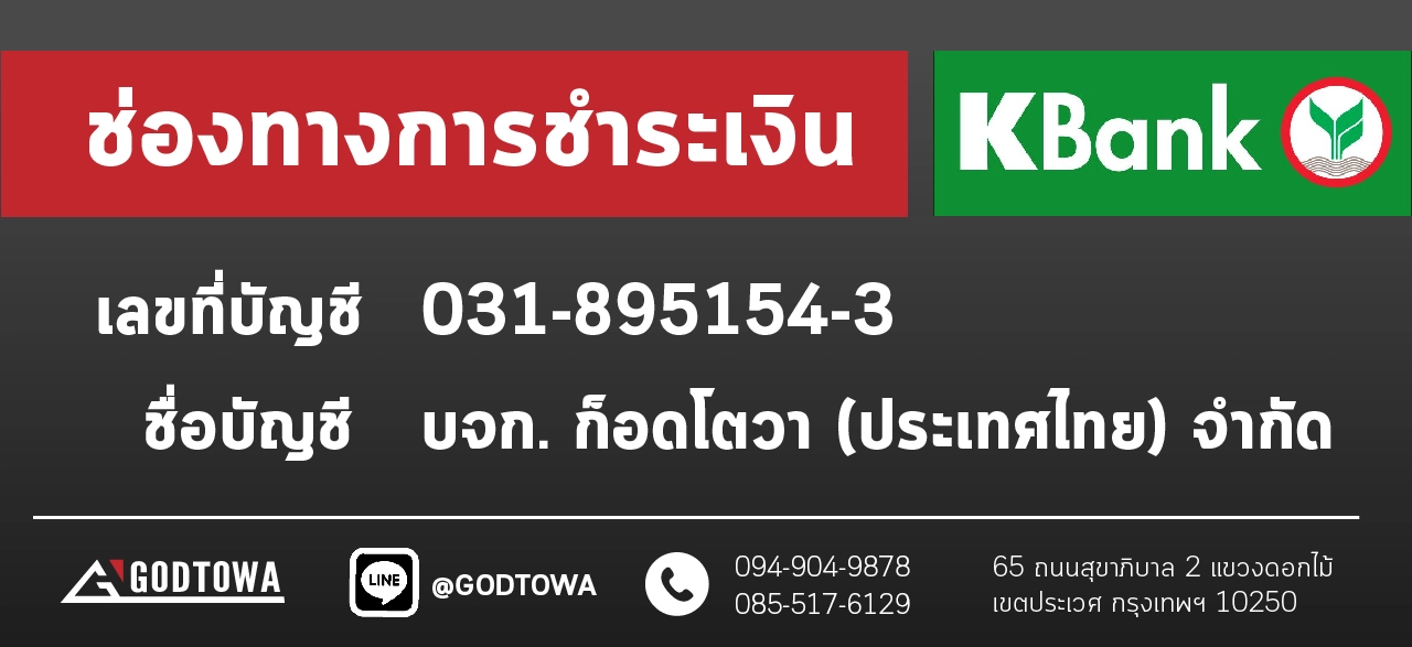 สามารถแจ้งหลักฐานการโอนเงิน พร้อมเลขที่ใบสั่งซื้อ ได้ทาง LINE ID : @GODTOWA