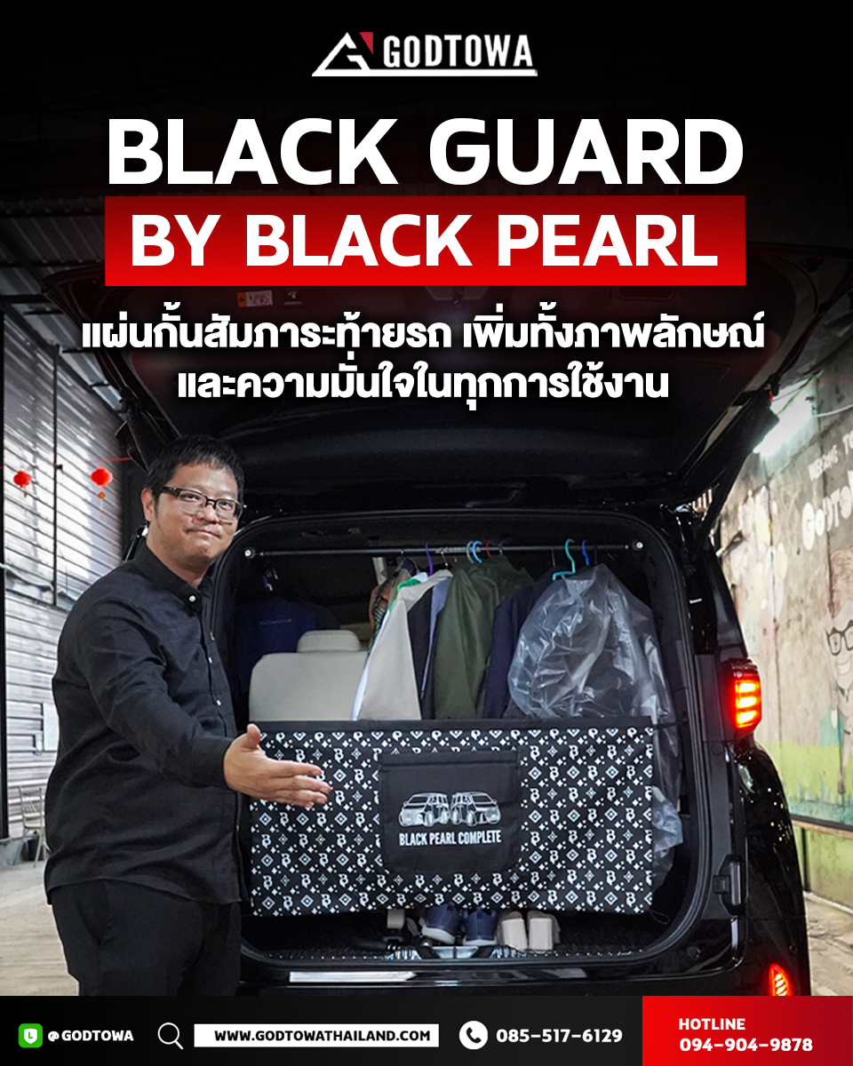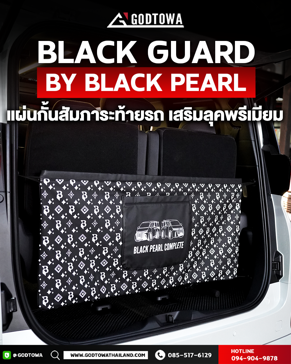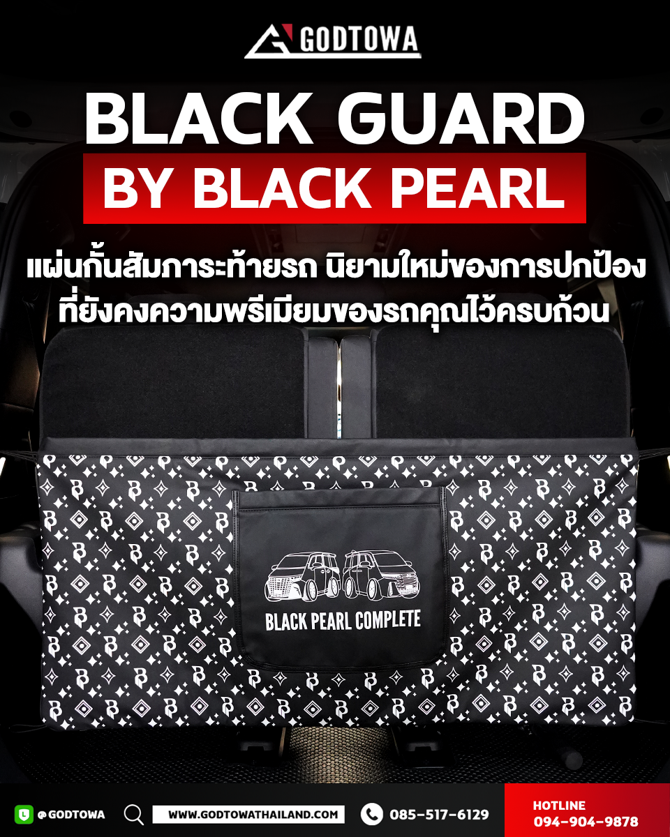 Black Guard by BLACK PEARL คือแผงกั้นสัมภาระท้ายรถที่ออกแบบมาเพื่อช่วยจัดระเบียบช่องเก็บของ พร้อมเสริมลุคหรูแบบ VIP ด้วยดีไซน์พรีเมียม ลาย BLACK PEARL COMPLETE สุดเท่