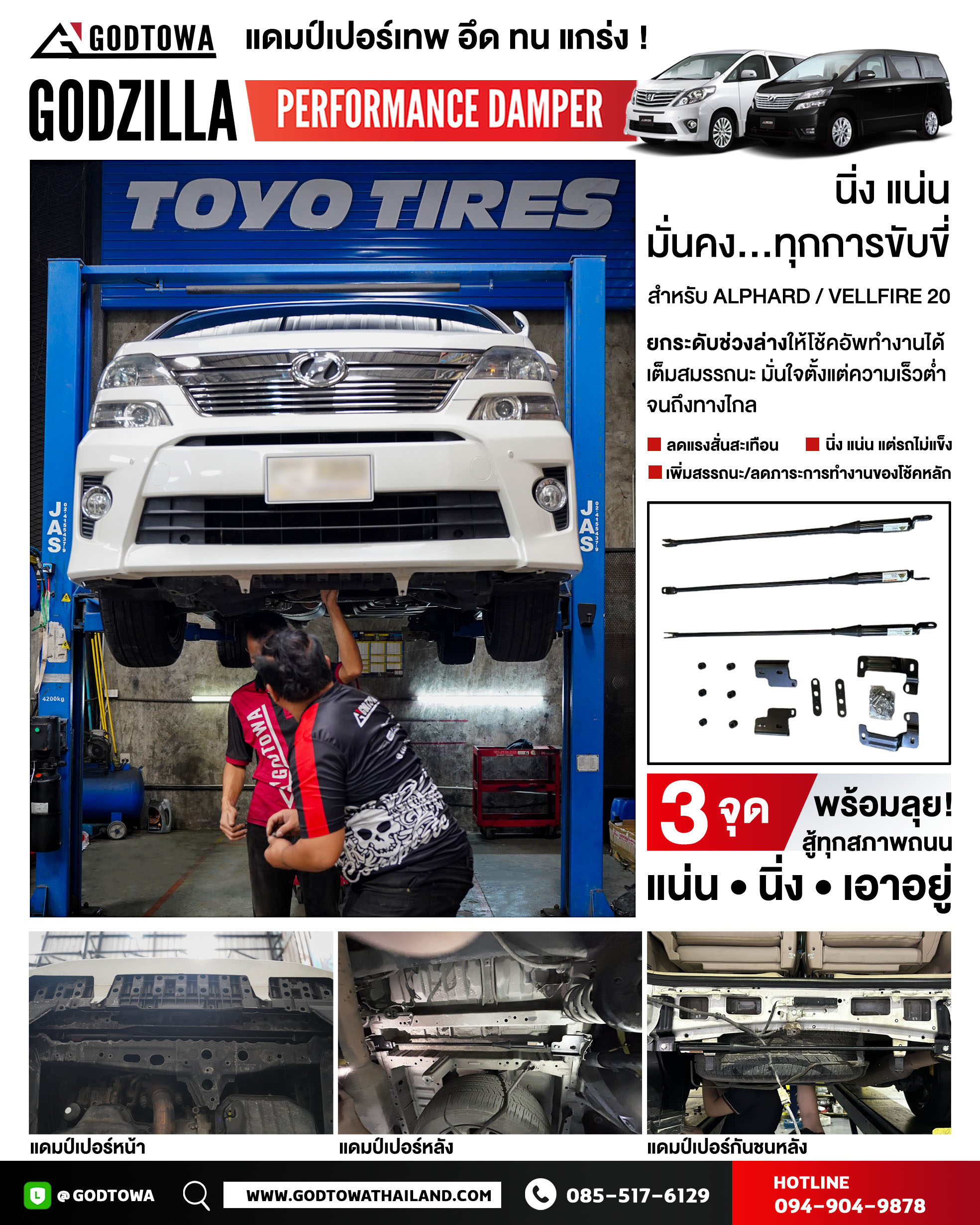 ชุดค้ำGodzilla Performance Damper สำหรับรถยนต์ Alphard Vellfire 20 Godzilla Performance Damper Alphard Vellfire 20