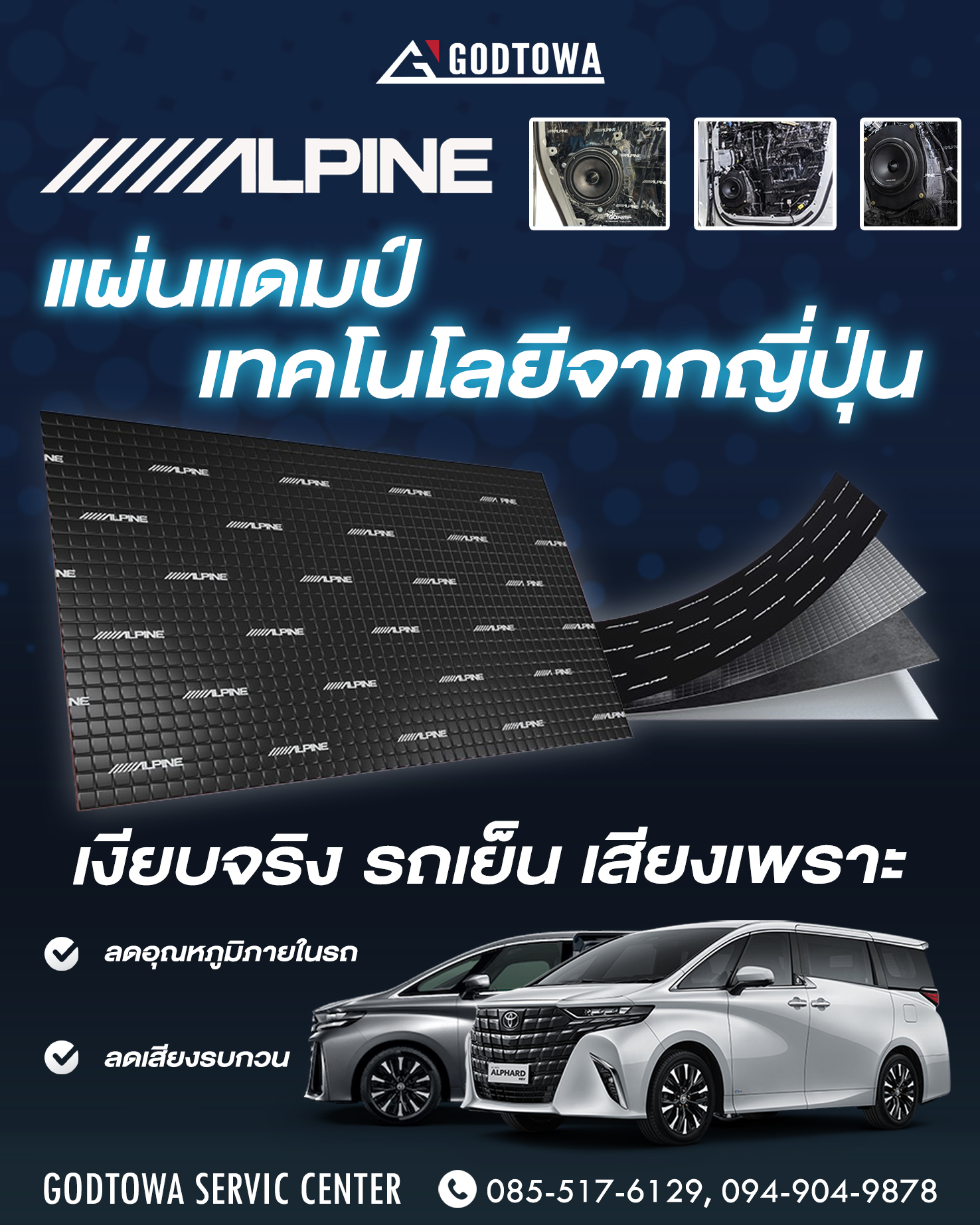 แผ่นแดมป์ซับเสียง Alpine สำหรับ ALPHARD VELLFIRE