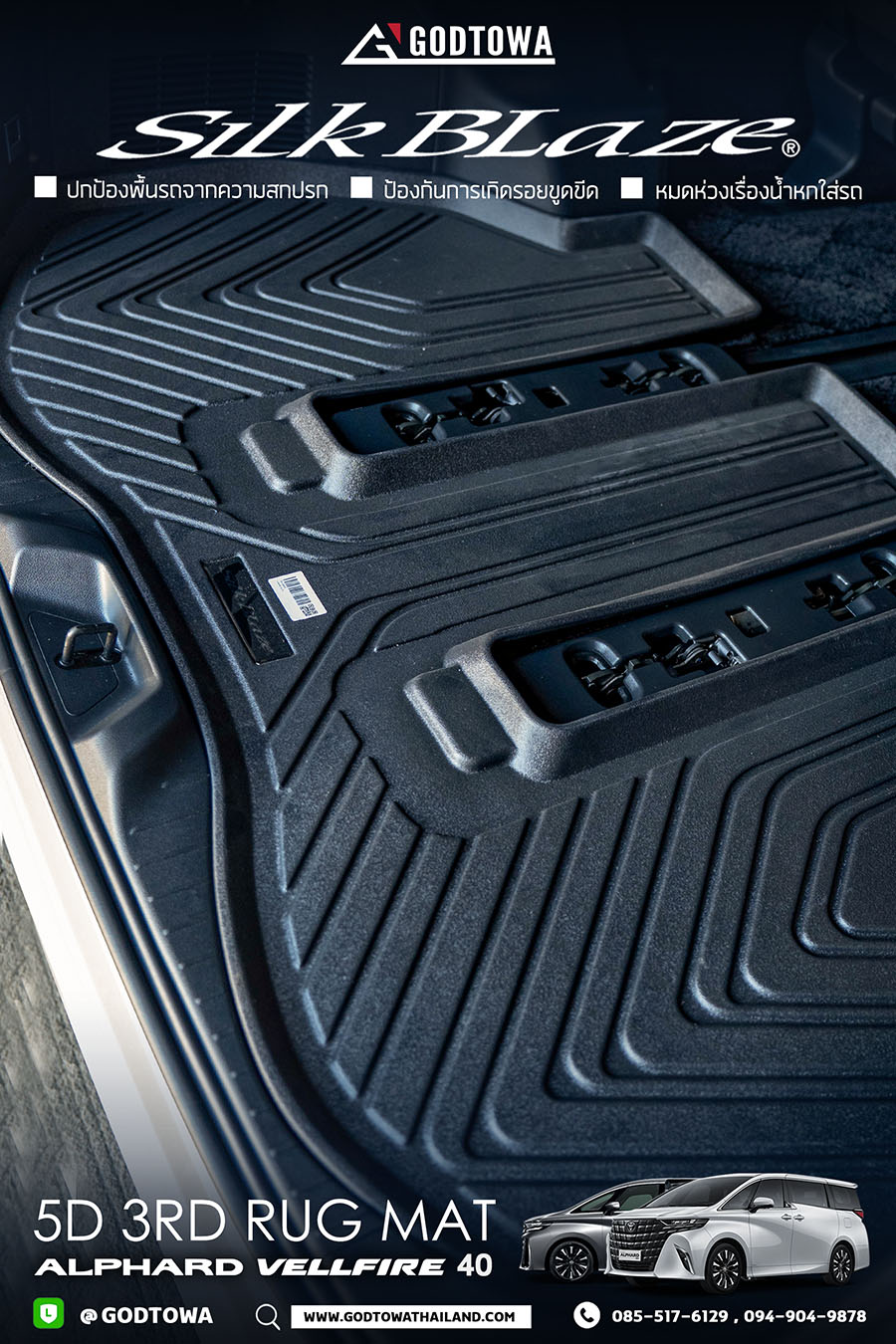 SILK BLAZE 5D 3rd Rug Mat ถาดรองพื้นห้องสัมภาระด้านหลังที่ออกแบบมาสำหรับ Alphard และ Vellfire 40 โดยเฉพาะ นำเข้าแท้จากประเทศญี่ปุ่น ให้คุณปกป้องพื้นรถจากความสกปรกและรอยขีดข่วนได้อย่างมีประสิทธิภาพตั้งแต่วันแรกที่ใช้งาน