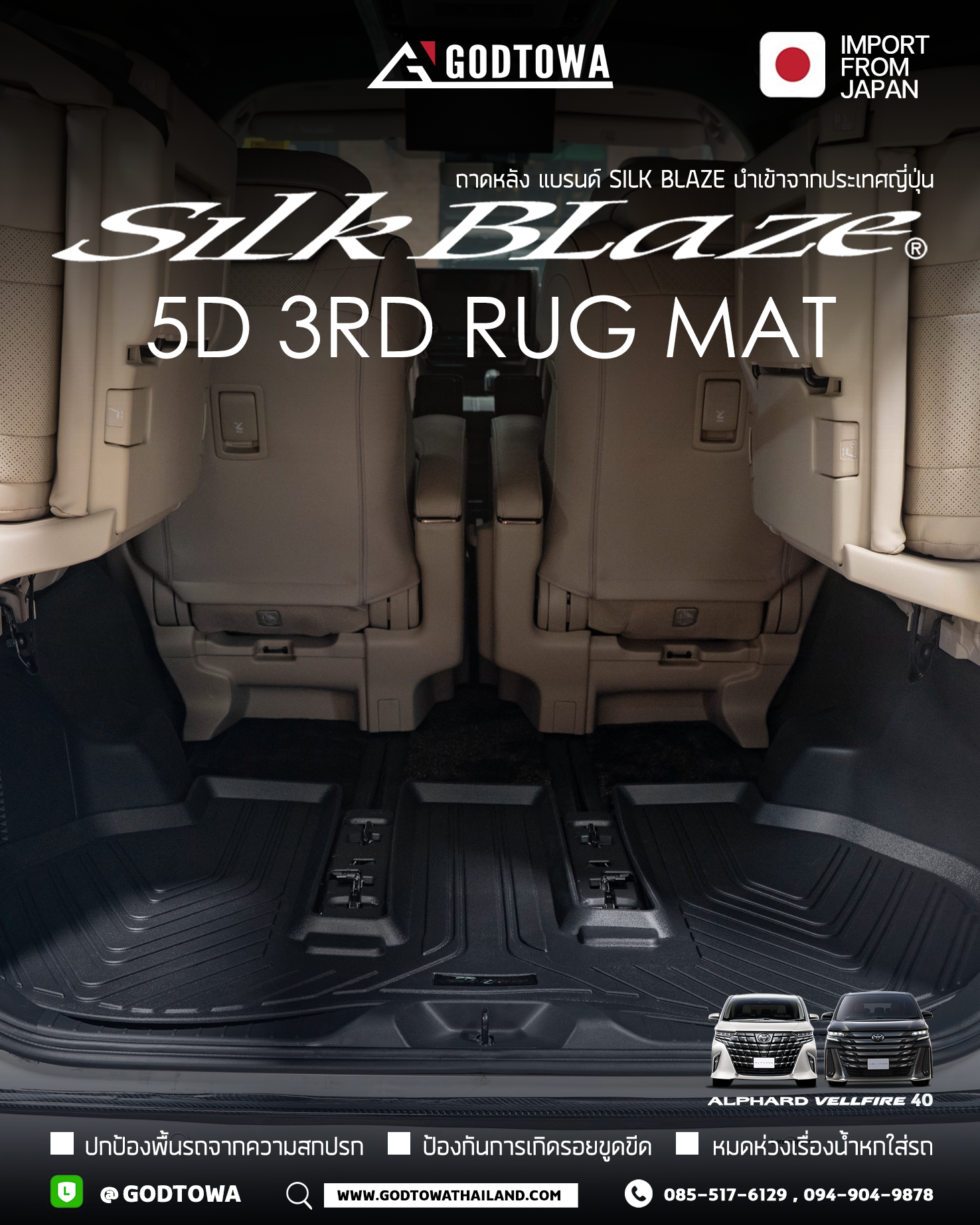 SILK BLAZE 5D 3rd Rug Mat ถาดรองพื้นห้องสัมภาระด้านหลังที่ออกแบบมาสำหรับ Alphard และ Vellfire 40 โดยเฉพาะ นำเข้าแท้จากประเทศญี่ปุ่น ให้คุณปกป้องพื้นรถจากความสกปรกและรอยขีดข่วนได้อย่างมีประสิทธิภาพตั้งแต่วันแรกที่ใช้งาน