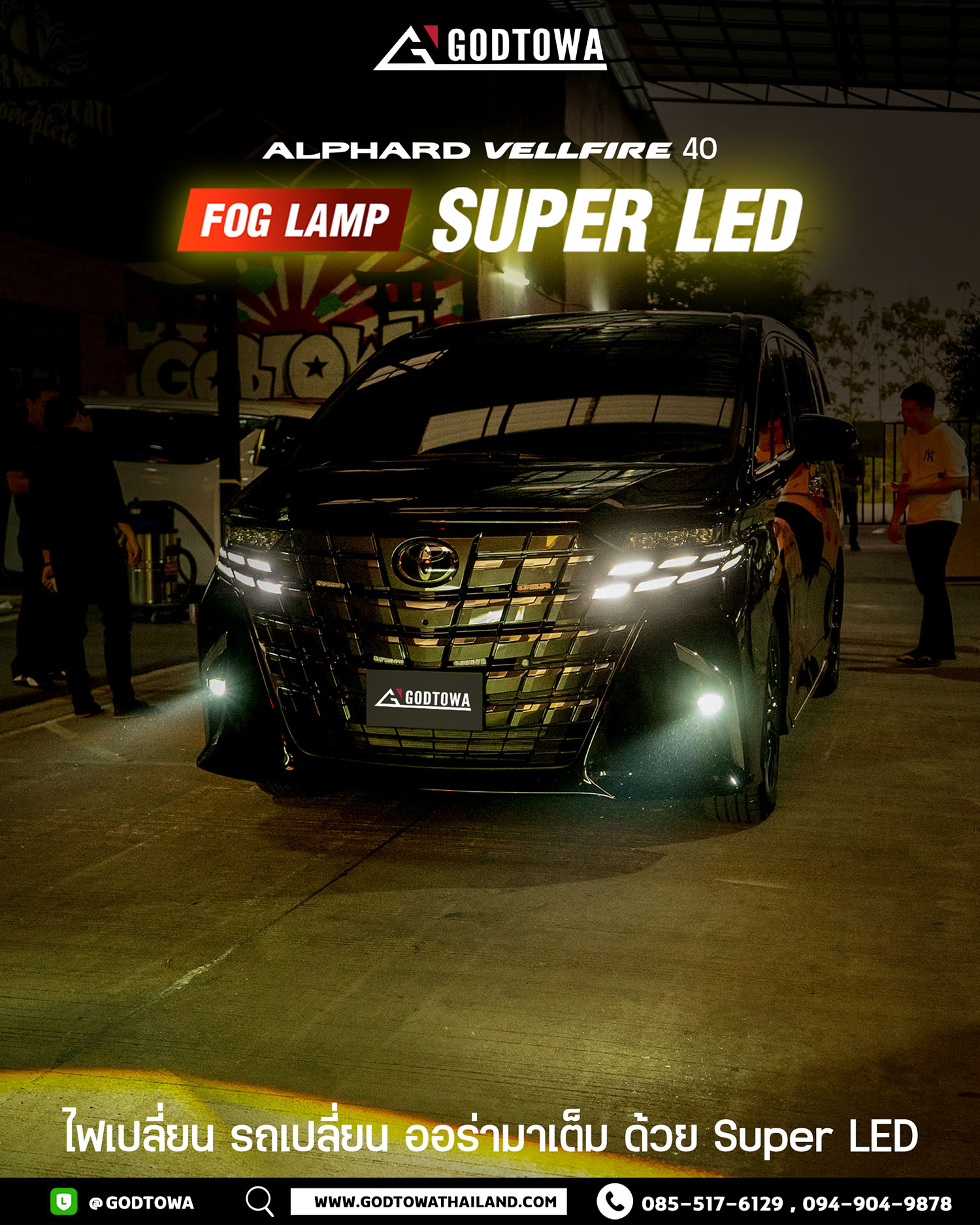 อัปเกรดแสงสว่างให้เหนือระดับ ด้วยไฟตัดหมอก Super LED จาก GODTOWA ที่ออกแบบมาเพื่อรถ Alphard และ Vellfire 40 โดยเฉพาะ ให้แสงขาวคมชัด มองเห็นถนนได้ชัดเจนยิ่งขึ้นในทุกสภาพอากาศ ไม่ว่าจะหมอกลง ฝนตก หรือขับขี่ในเวลากลางคืน