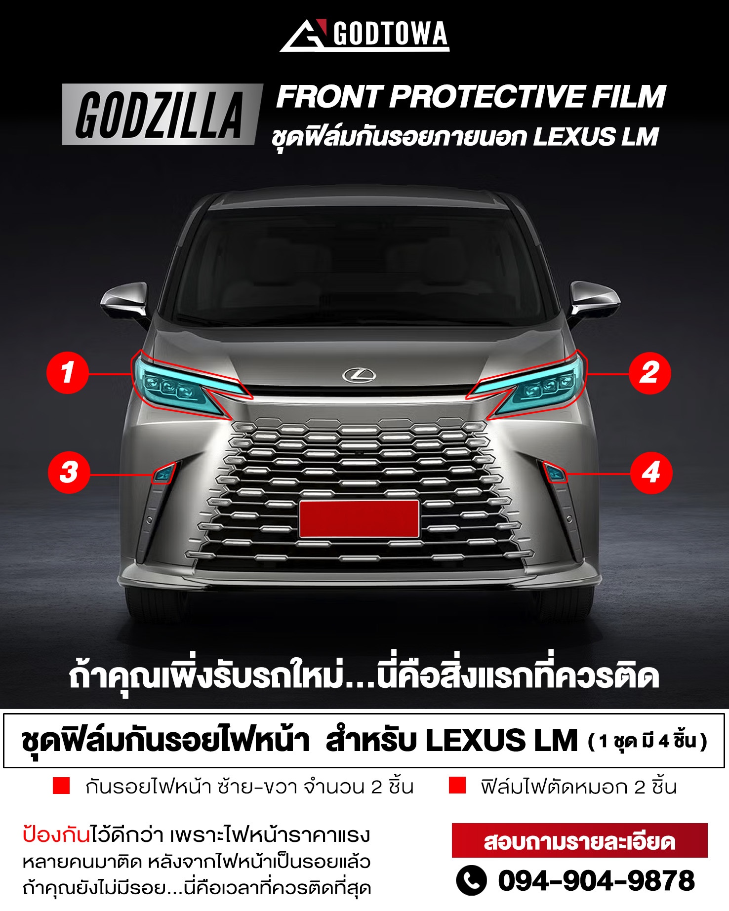 GODZILLA Front Protective Film ชุดฟิล์มกันรอยไฟหน้า Lexus LM